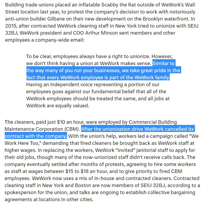 WeWork COO claims that cleaning staff don't need a union because they are "family," and then fires them all. https://www.dissentmagazine.org/article/wework-sharing-economy-labor-company-town …pic.twitter.com/DjnYB1fiKi
