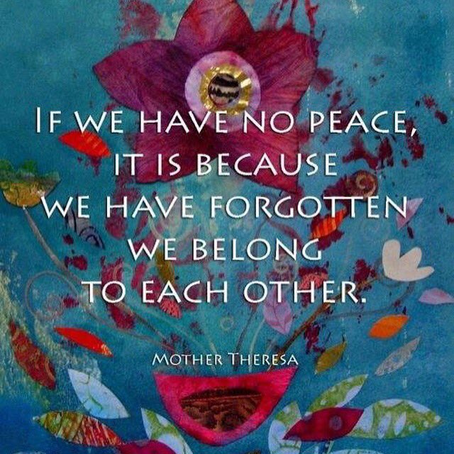 #peace, it is because we have forgotten we belong to each other" -#MotherTheresa#StoptheViolencepic.twitter.com/dn0HKjiy3V
