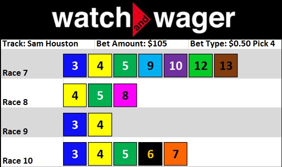 Race 7 starts an All Stakes $0.50 Pick 4. Here's my ticket. Moments to post. Get your picks in now! Good luck.