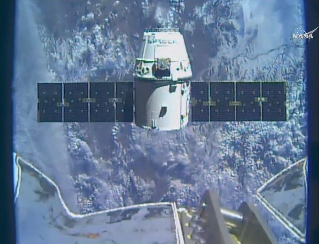 15. Capture confirmed! Dragon now attached to the robotic arm