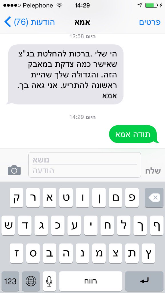 6. שלשום חגגנו לה אצלה יום הולדת 84. היום אסמס חצי פורמלי. מאמא.