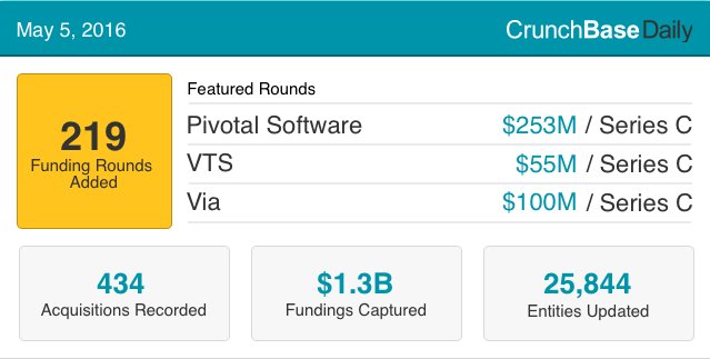 #CBDaily: $1.3B in 219 rounds added & more! http://bit.ly/1br9NXq pic.twitter.com/6B0b3vFfW0