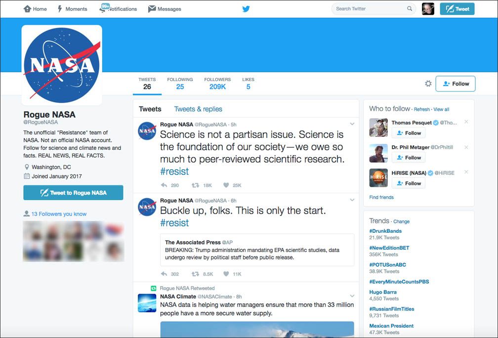 Rogue NASA, EPA, NPS Twitter Accounts Launched to Protest Trump Directives
