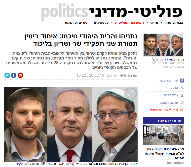 ושוב מניפולציה זולה של ynet על גולשיו (ראו טוקבקים). שילוב פשוט של כותרת ותמונה יצר את הרושם שבן-גביר הוא זה שהולך להתמנות לשר, ולא הרב רפי פרץ. כנראה העוזרת של גנץ מכתיבה להם בטלפון לא רק את הטקסטים אלא גם את עיצוב העמוד
