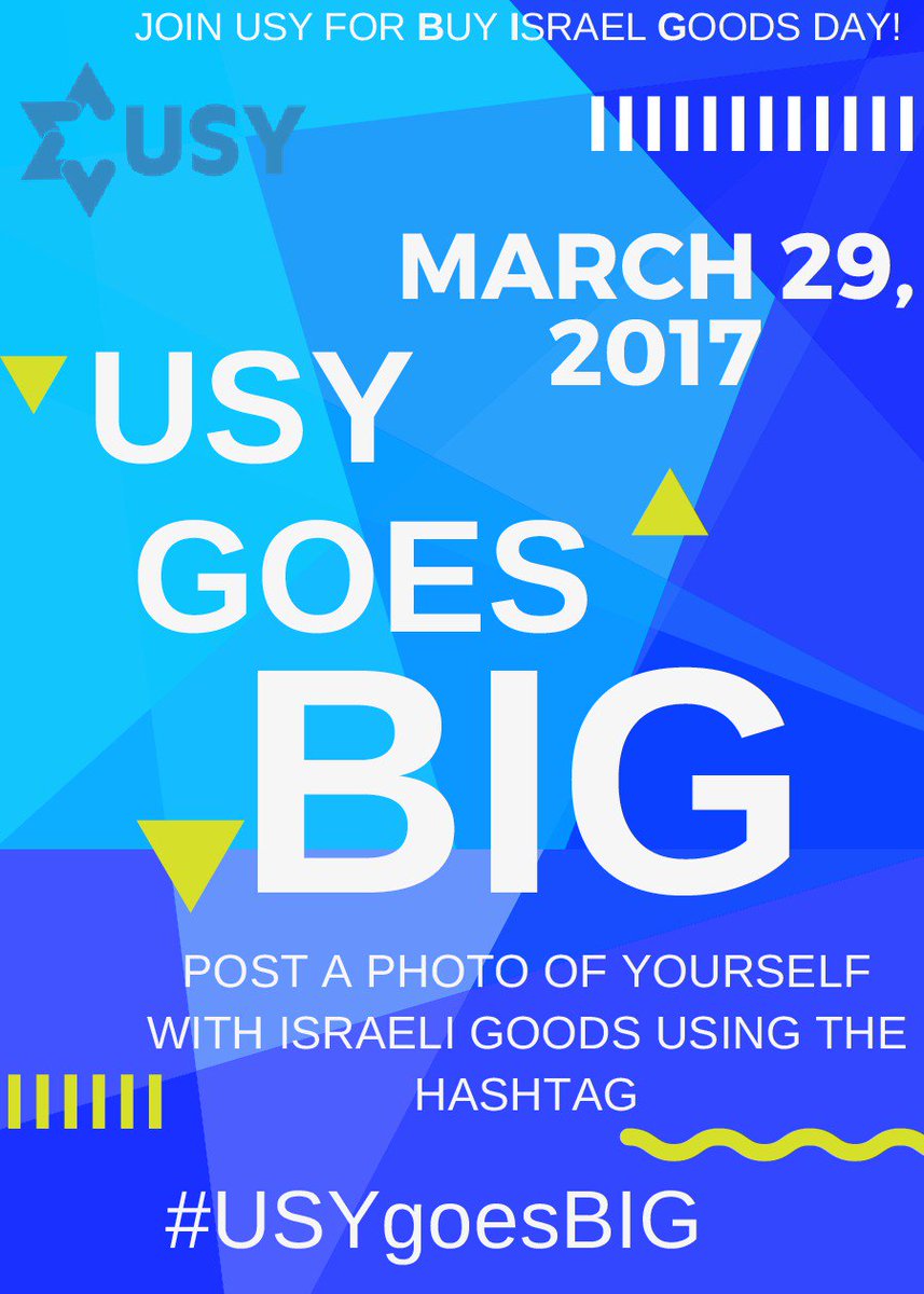 Today USY goes BIG. Buy and post a picture or video of yourself with Israeli goods, using !