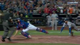 A good throw would have had him. A good throw would have nailed Royals first baseman Eric Hosmer at the plate for the final out in Game 5 of the World Series at Citi Field. A good throw would have sealed the Mets' win and sent the World Series back to Kansas City. Hosmer knew what he was doing, though.