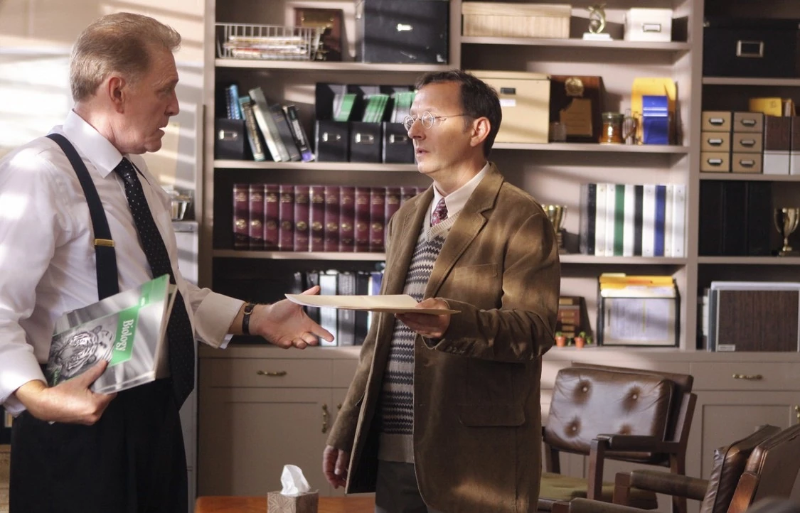 ![]() Ben confronts Principal Reynolds with his inappropriate e-mails ("Dr. Linus") |