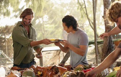 ![]() Sawyer hosts a feast, after Desmond caught a boar. |