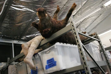 ![]() A boar prop at the Hawaii Film Studio.Photo by Richard Walker accompanying a Honolulu Star-Bulletin article |