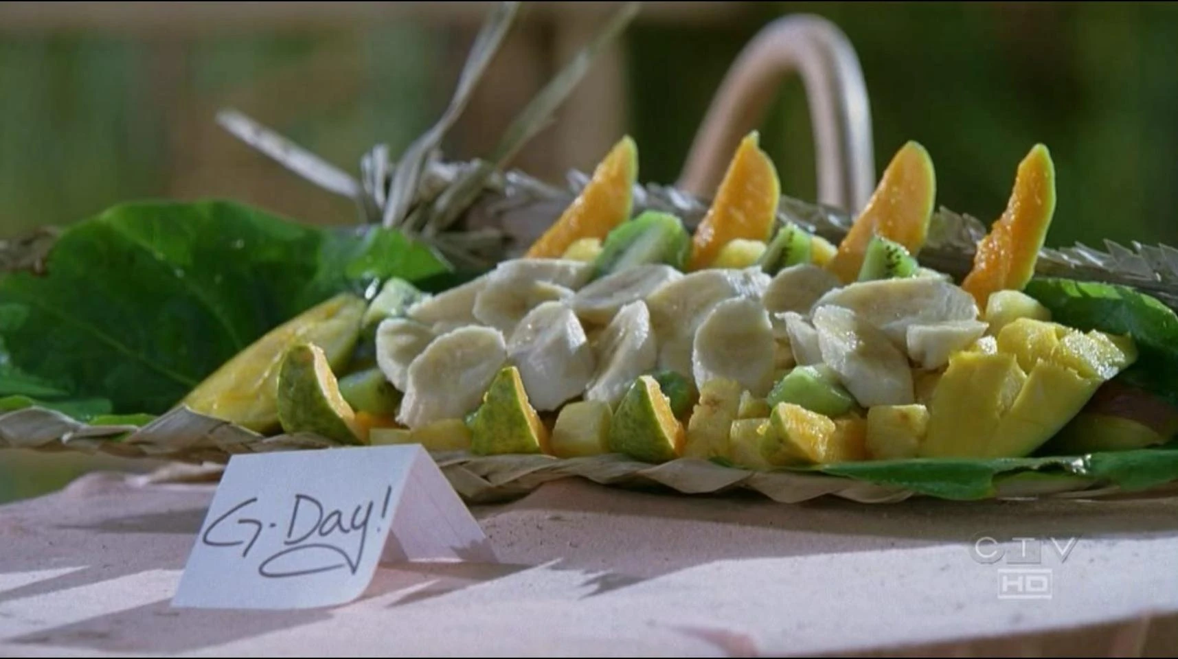 ![]() Charlie's fruit salad courtship of Claire. ("Par Avion") |