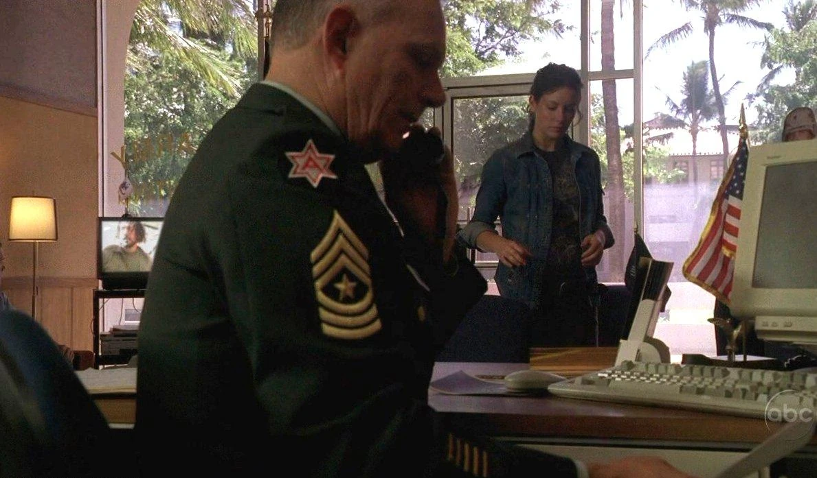 - A TV monitor in Sam's U.S. Army recruitment center shows Sayid being pushed into the back of a car during the episode "What Kate Did".