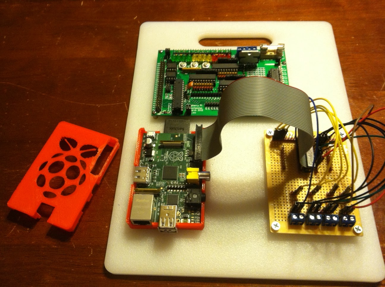 Since the Raspberry Pi has many GPIO pins, all we needed to do was create a simple circuit between two of them that, once interrupted, would signal that it was time for the master controller to go to work.