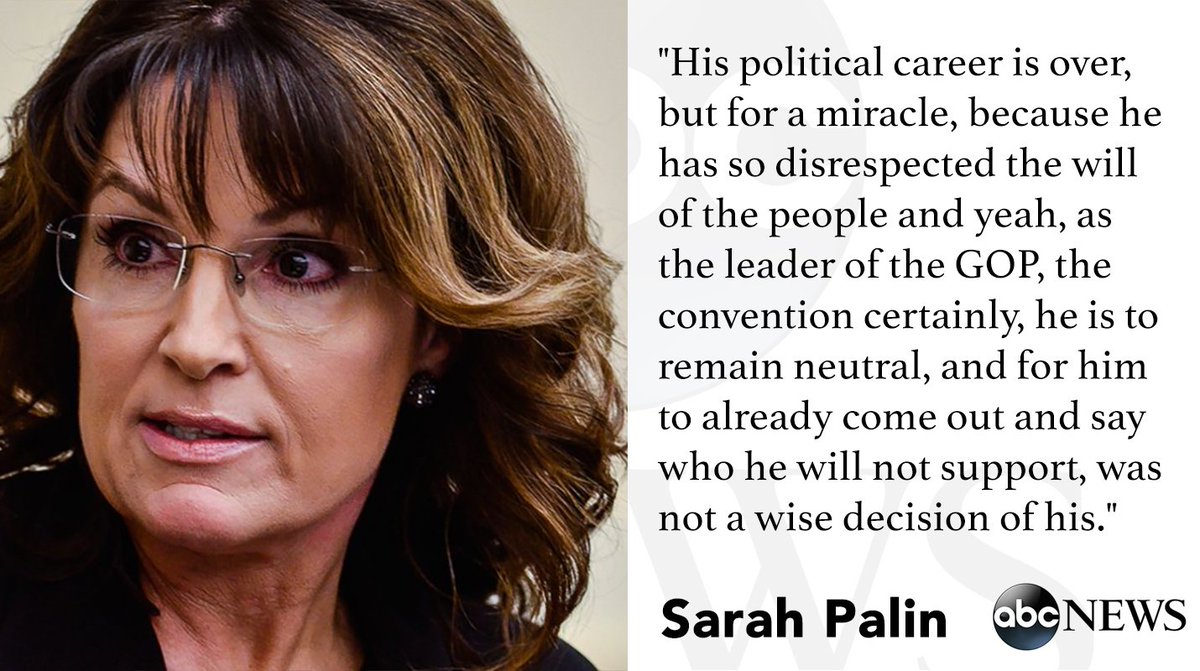 Sarah Palin: House Speaker Paul Ryan's career "is over" for not supporting Donald Trump. http://abcn.ws/275R8LG pic.twitter.com/fjV7T2tvwS