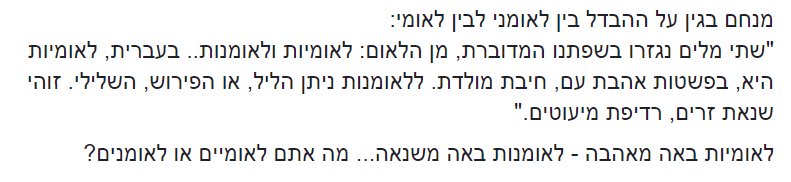שואלים אותי למה חוק הלאום מרגיז יותר מחוק הגיוס או חוק ההסדרה או חוק השכר של ביבי וכל יתר הזוועות. הסיבה פשוטה: כל האחרים הם חוקים שמנסים לעקוף את השוויון או את המצב החוקי הקיים. חוק הלאום יוצר מצב חדש, משנה את כל כללי המשחק. זה מה שחמור בו