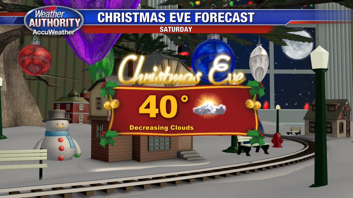 Consistent temperatures this weekend. Decreasing clouds Saturday, dry Sunday. Merry Christmas!