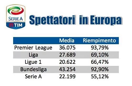 9. ממוצע הצופים בליגות הגדולות באירופה ואחוז תפוסה באיצטדיונים.