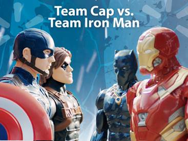 #TeamCap vs#TeamIronMan, whose side are you? Gear up today at@Walmart and online: http://bit.ly/1qFmc3H pic.twitter.com/Li3TBsBmiC