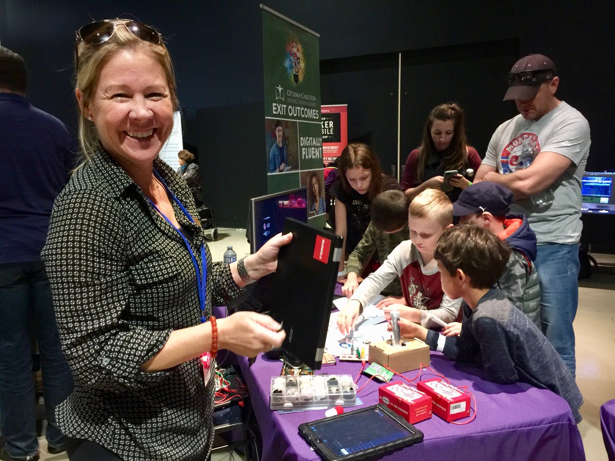Standing room only at booth at ! Thank you, and , for your passion and the invigorating conversation about making tech skills fun for Ottawa kids!
