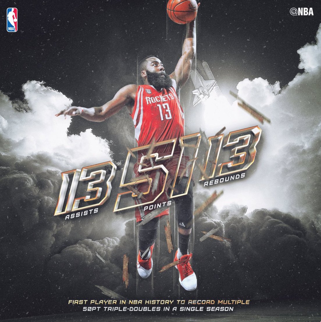 James Harden became the first player in league history with multiple 50-point triple-double performances in a single season