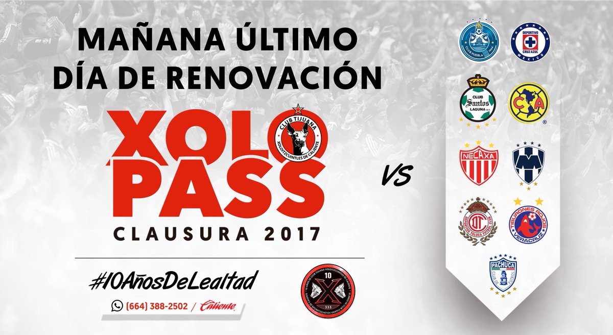 Hoy es nuestro último día de renovación del XoloPass C2017. Nos vemos en el Estadio Caliente hasta las 7 de la noche