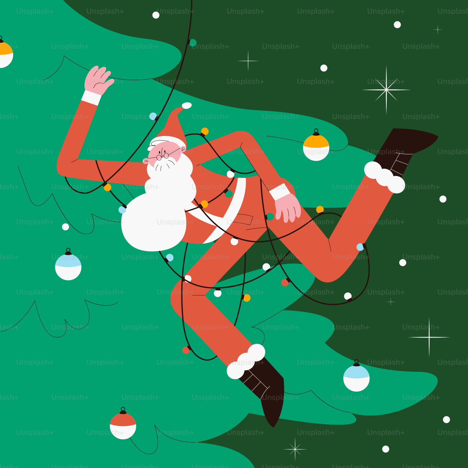 Ein Weihnachtsbaum, an dem Ornamente hängen