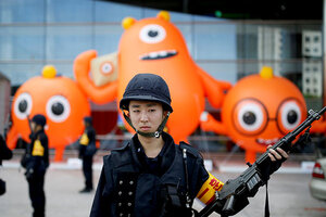 South Korean policemen take part in an anti-terror and security drill at a mall in Seoul, South Korea on Friday.