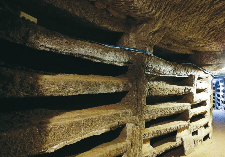 These burial spaces are like narrow berths in a train sleeper car. Carved in the soft tufa stone, they are stacked one atop the other.