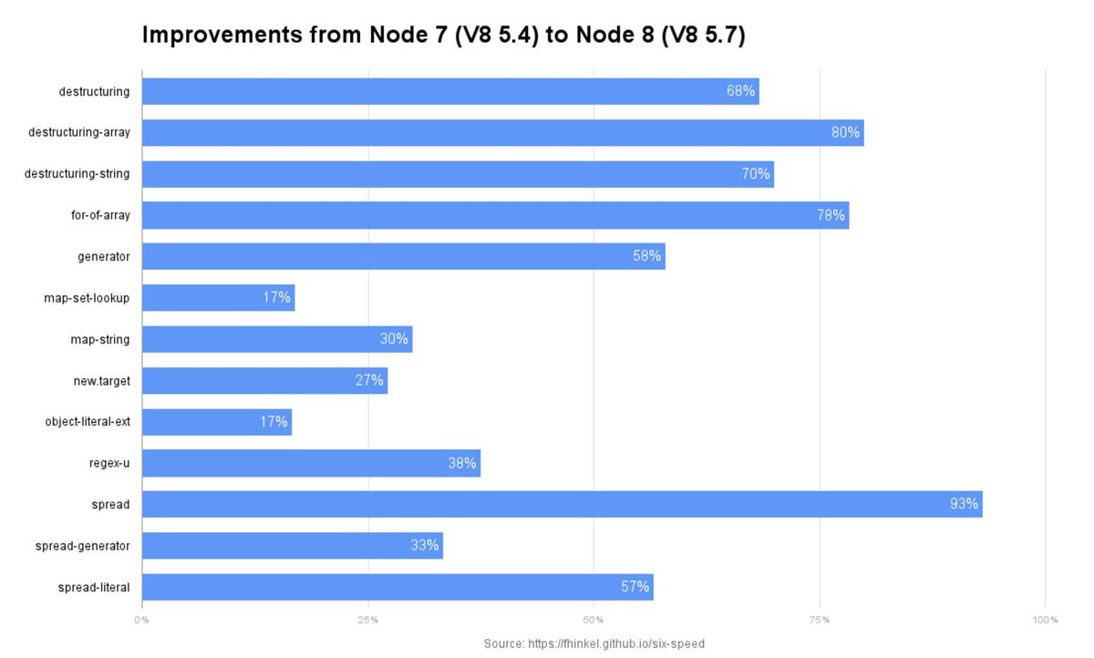 V8's ES2015 performance improved significantly between Node 7 and Node 8. More updates in this
