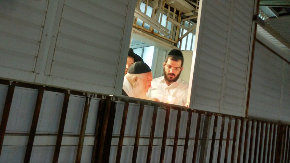 13. מרן שר התורה הגר״ח קנייבסקי בבדיקת חמץ במרפסת חלון ביתו ברח׳ רשב״ם בבני ברק.