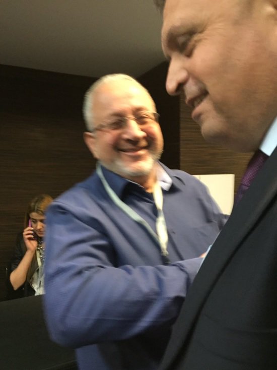 نقيب الصحفيين الفلسطينيين ناصر أبو بكر مع ممثل النقابة الإسرائيلة ان شاء الله يقود هذا اللقاء الى رفع المقاطعة ضدناpic.twitter.com/8vkEwtZmeN
