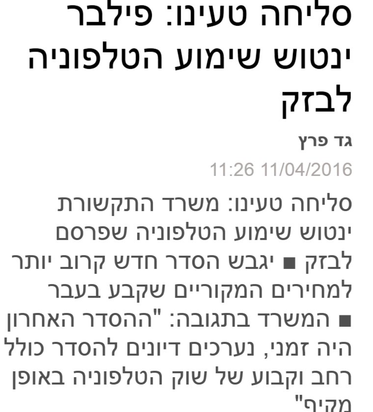 פילבר : הצעת האוצר למתן הקלות לגולן טלקום היא ישראבלוף. כנראה שלא מבינים שם את החומר