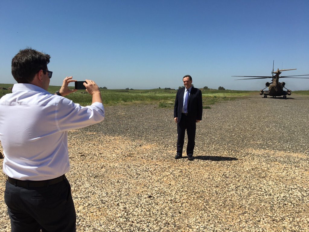 תמונת היום: אופיר אקוניס בתפקיד הצלם של ישראל כץ על רקע היסעור בגולן.pic.twitter.com/Z3VNzTRaod