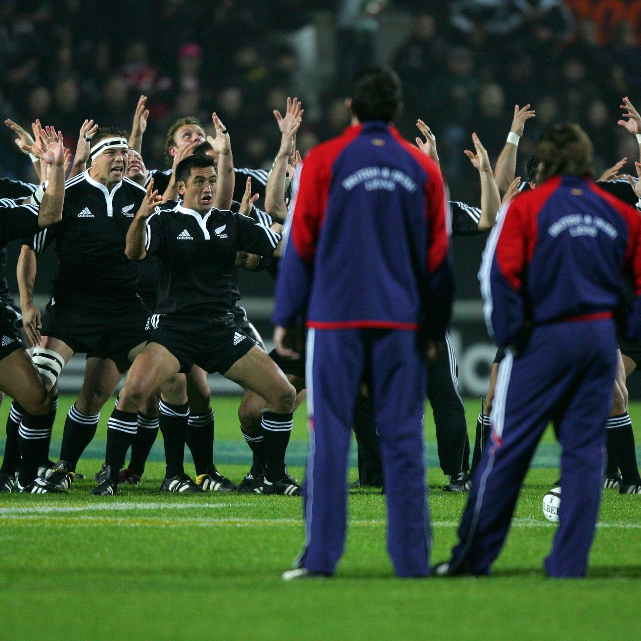 Prior to the start of the Maori All Blacks - British & Irish Lions rugby match, the All Blacks perform a dramatic "Haka Timatanga" war dance.