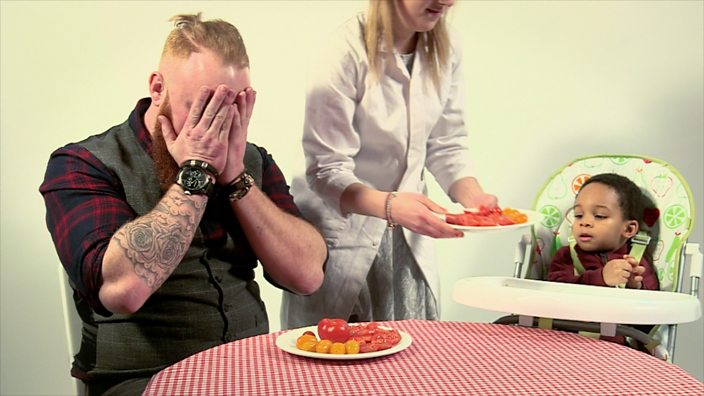 Will the beefy rugby bloke gain victory over the little cute lad when it comes to polishing off a few choice bites? Let the battle of the taste buds begin, and may the best man win...