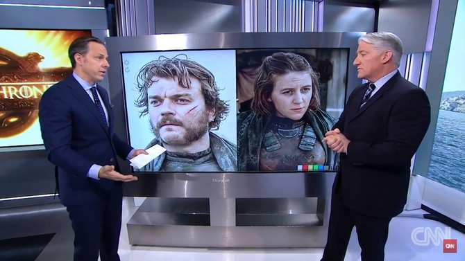 In their analysis of the two candidates, the CNN anchors weighed in that it was "A two-person race between Balon's daughter Yara who's ruthless, and his estranged brother Euron who is, frankly, murderous." Describing the two candidates' chances in the Kingsmoot, they accurately surmised: "Now, the Iron Islands have never had a female leader before, so it's unclear whether or not they'd be willing to embrace her. But on the other hand, Euron is something of a carpetbagger, they haven't seen him in years." The sketch is available for free online.[4]