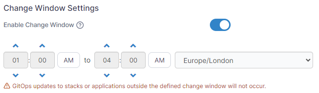 This setting allows you to specify a window within which GitOps updates to your applications can be applied.