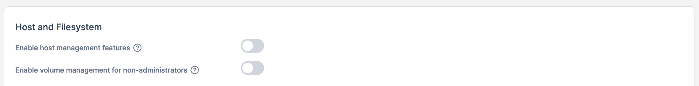 For environments running the Portainer Agent, this section is where you configure how Portainer interacts with elements of the host.