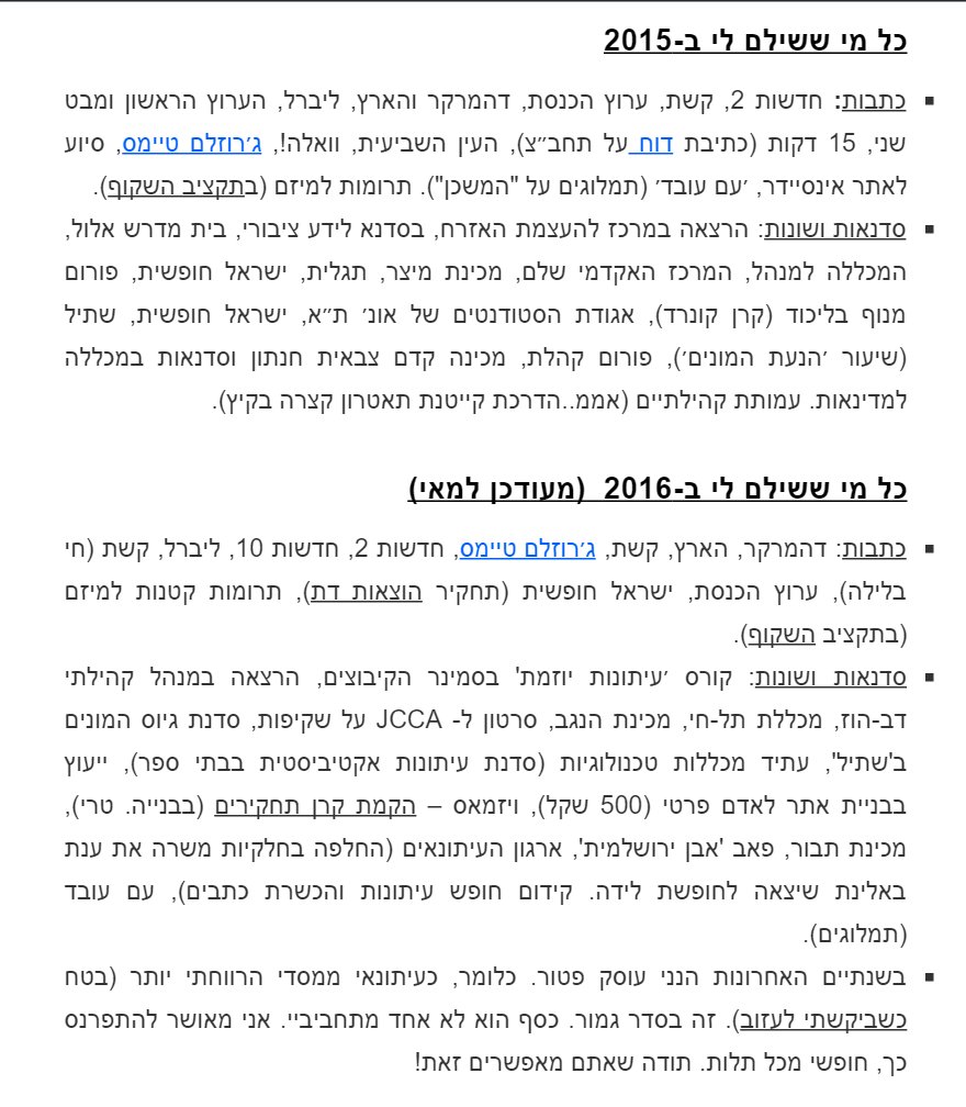 3. אשתקד יצאתי בזכותכם מעבדות לעצמאות. אני בר מזל. העצמאות שלי כמובן שקופה, וכל משלמי שכרי כאן: