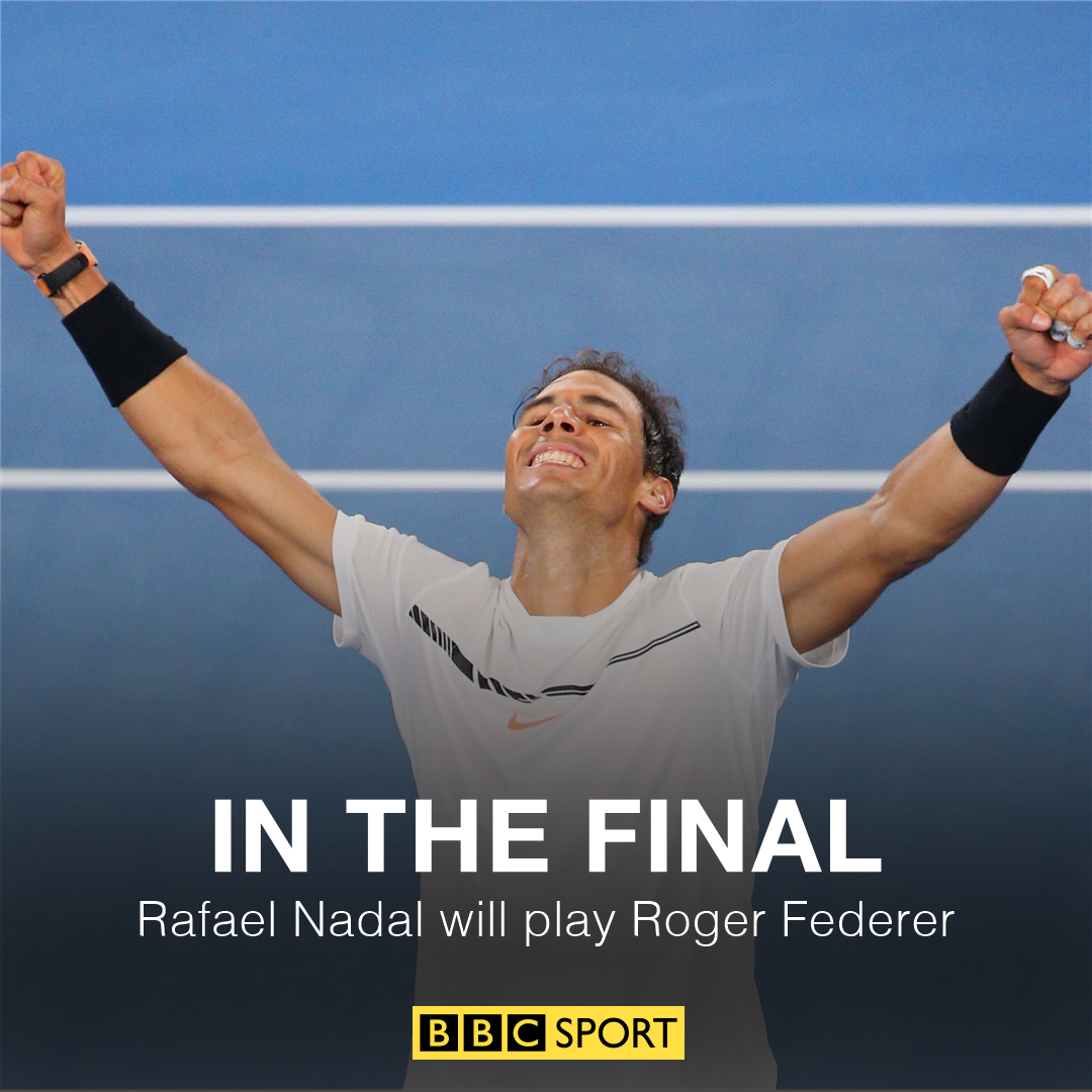 It will be v in the final! Nadal holds off 63 57 76(5) 67(4) 64.