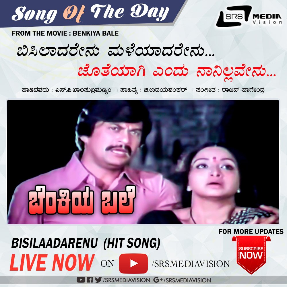Watch the Song Bisilaadarenu (Male) Sung by S.P. Balasubramanyam from the film Benkiya Bale. Video Song : http://bit.ly/2WgXYRl Anantha Nag & Julie Lakshmi playing a lead role. Music : Rajan Nagendra. Lyrics : Chi UdayaShankar.pic.twitter.com/6Y5vV6W2FT