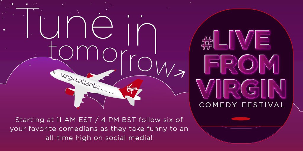 #LiveFromVirgin Comedy Festival is taking flight tomorrow! Get ready to laugh with@abbijacobson and her funniest friends.pic.twitter.com/KbSDvMtXvP
