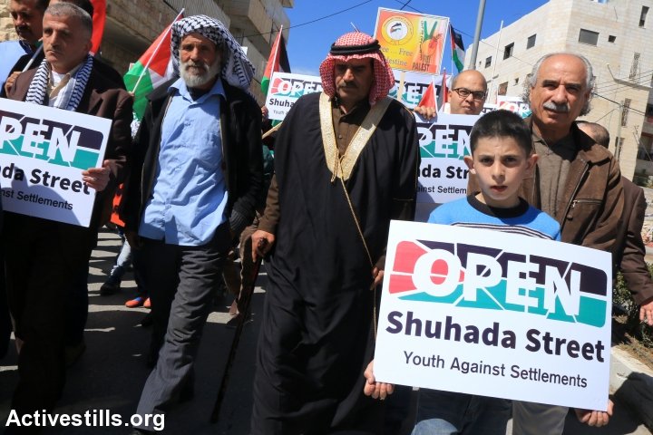 Palestinian and Israeli activists march against closure of Shuhada ST, FEB 20, 2016. More: http://bit.ly/1Vxl502 pic.twitter.com/vVmH9xG5Ma