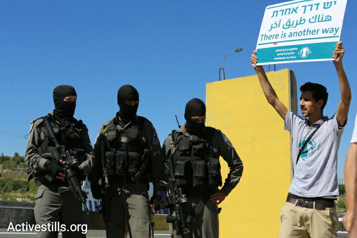 #NOW: ~200 Palestinians & Israelis march on WB checkpoint to protest the occupation. (@activestills)pic.twitter.com/Ztf3oEsmez