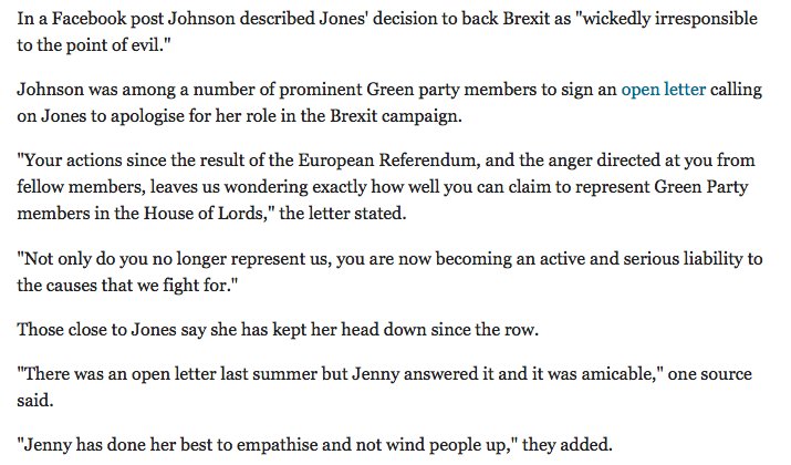 One former Green Party staffer told me they'd left the party because of Jenny Jones' campaign for Brexit.http://uk.businessinsider.com/the-green-party-split-article-50-caroline-lucas-jenny-jones-back-brexit-2017-1 …