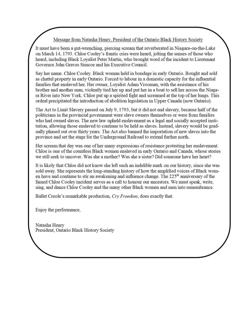 @BalletCreole and their production, Cry Freedom. President Natasha Henry@NHenryFundi wrote the program message, sharing a few words on the 225th anniversary of the Chloe Cooley incident.pic.twitter.com/qgSuki2K3h