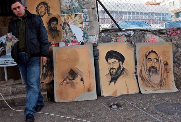 Somewhere in the West Bank town of Ramallah: a street vendor displays posters of Sayed Hassan Nasrallah, Sheikh Ahmed Yassin, & Jesus.....pic.twitter.com/jMKpqWJFBc