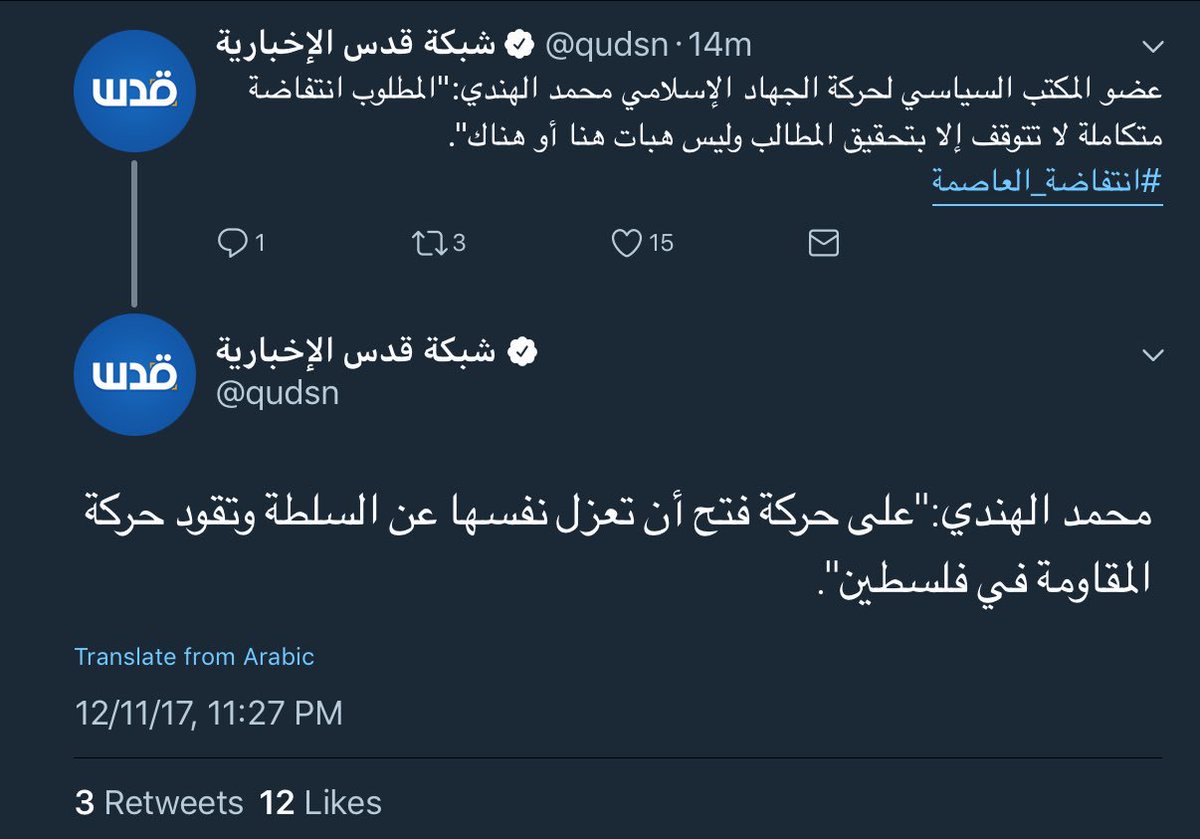 “what is demanded is a full blown intifada that does not stop until it achieves its objectives & not little bits here & there. its on fateh to separate itself from the ‘sulta’ (pa admin) & lead a resistance movement in palestine.” - pij rep mohammed el-hindipic.twitter.com/Q7nsTDrWjn