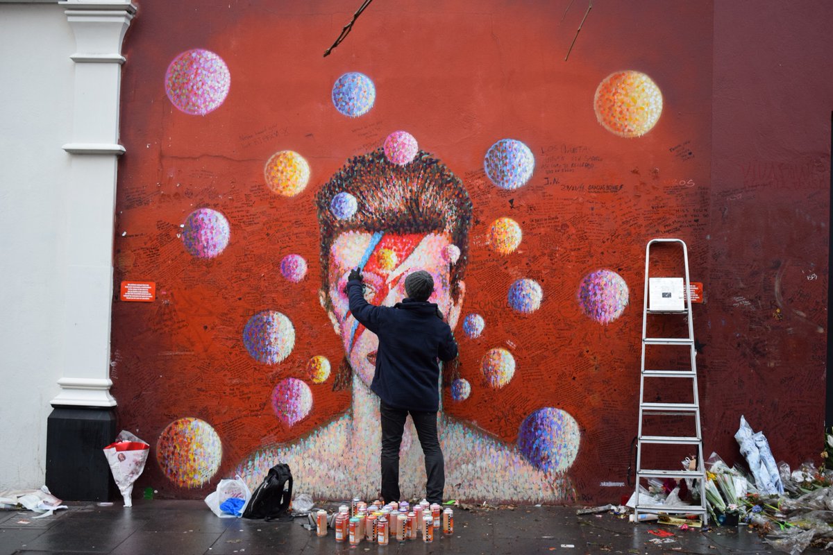 Today I was restoring the Bowie mural at Brixton, leaving all the messages in the background and… https://www.instagram.com/p/BO-V0Mhj_fi/
