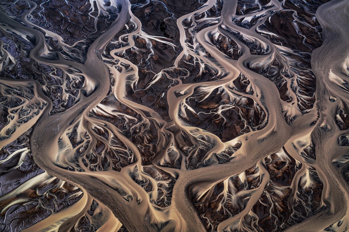 Top down view of glacial rivers in Iceland. Shot from plane with the Sony A7RII & 16-35 G-master lens.