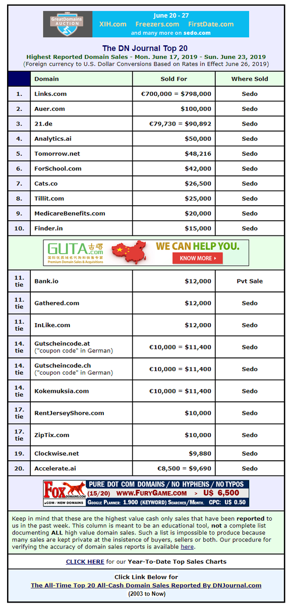 This week starts with another record-breaking domain sale: At €700,000, LINKS .com is Sedo's most expensive fixed price domain sale yet! Congrats to buyer and seller!